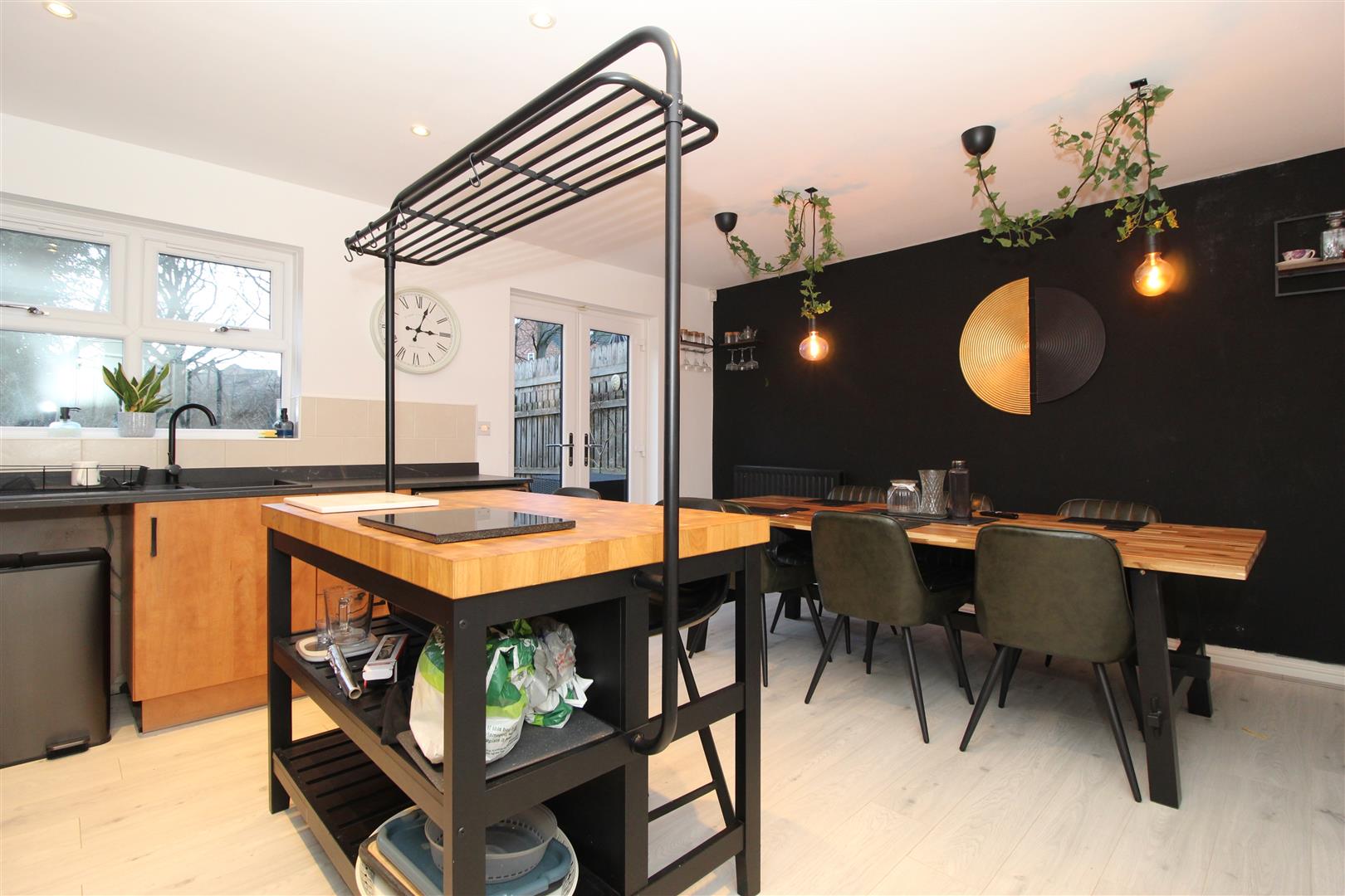 This modern property enters into a reception hallway, which accesses the integrated garage, the downstairs WC and the kitchen to the rear. The kitchen has been modernised and provides a breakfast bar area with French doors accessing the private garden.
